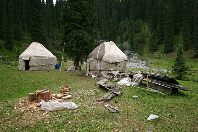 В эпоху великого оледенения высокогорной Тянь-Шань был покрыт еще более мощными ледниками. Следы их деятельности - валы, морены, ледниковые долины (троги), ледниковые озера - можно встретить на Тянь-Шане повсеместно.