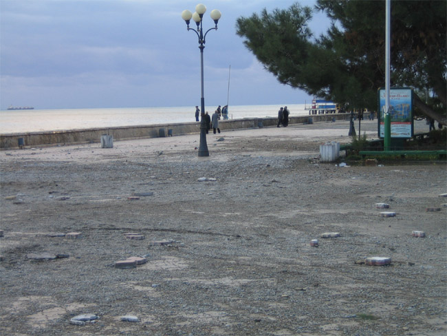 Шторм на Черном море - набережная покрытая галькой... волны выбросили много камней в том числе и больших на похожую часть