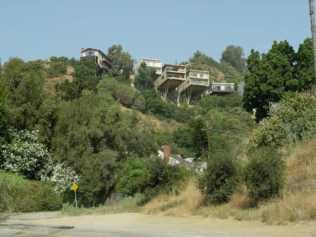 Малхолланд Драйв - улица на гребне голливудских холмов. Дома на холмах.